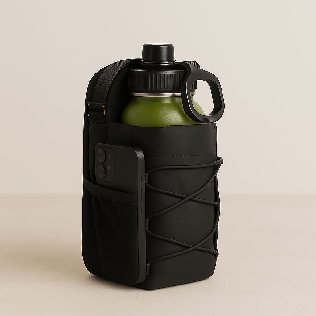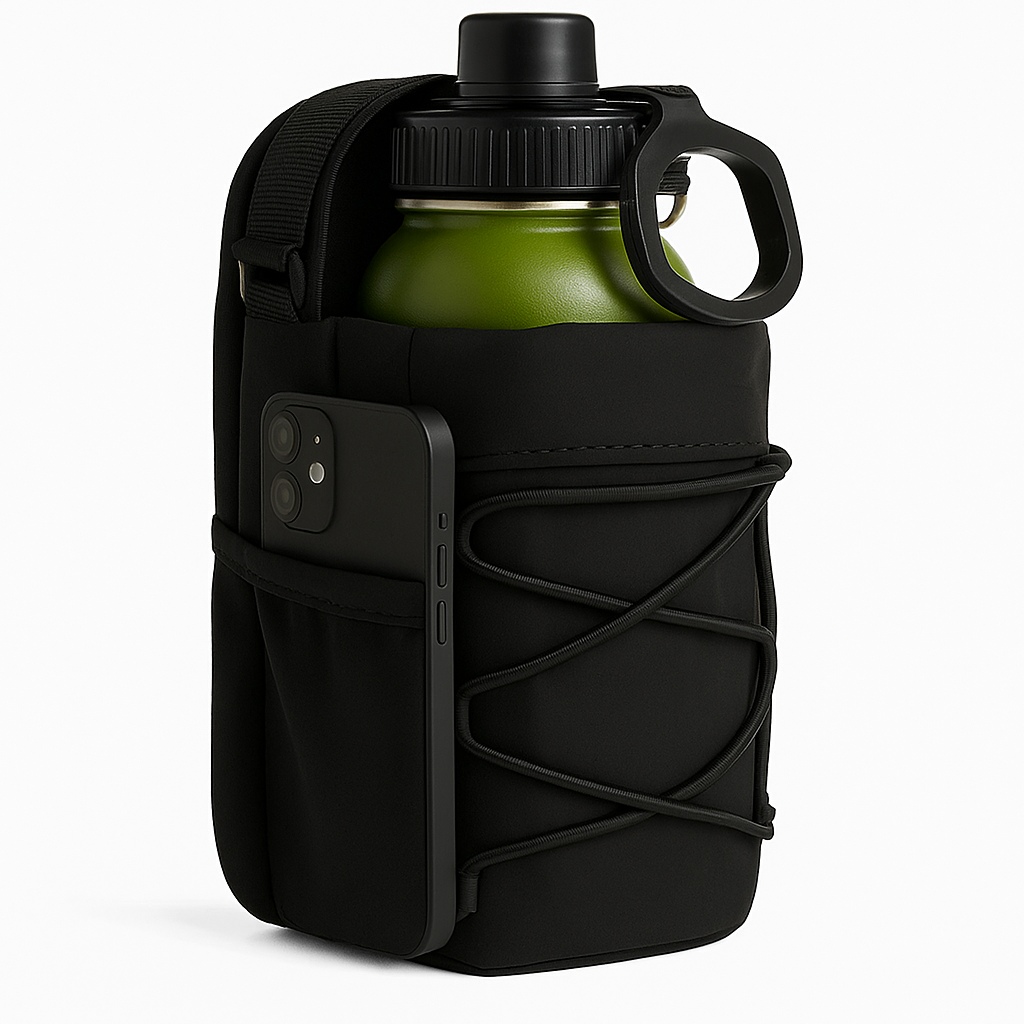 Stay organized and hydrated on the go with this sleek magnetic water bottle holder. Designed with a secure strap system, side phone pocket, and flexible storage for small essentials, it’s perfect for workouts, travel, or daily use.